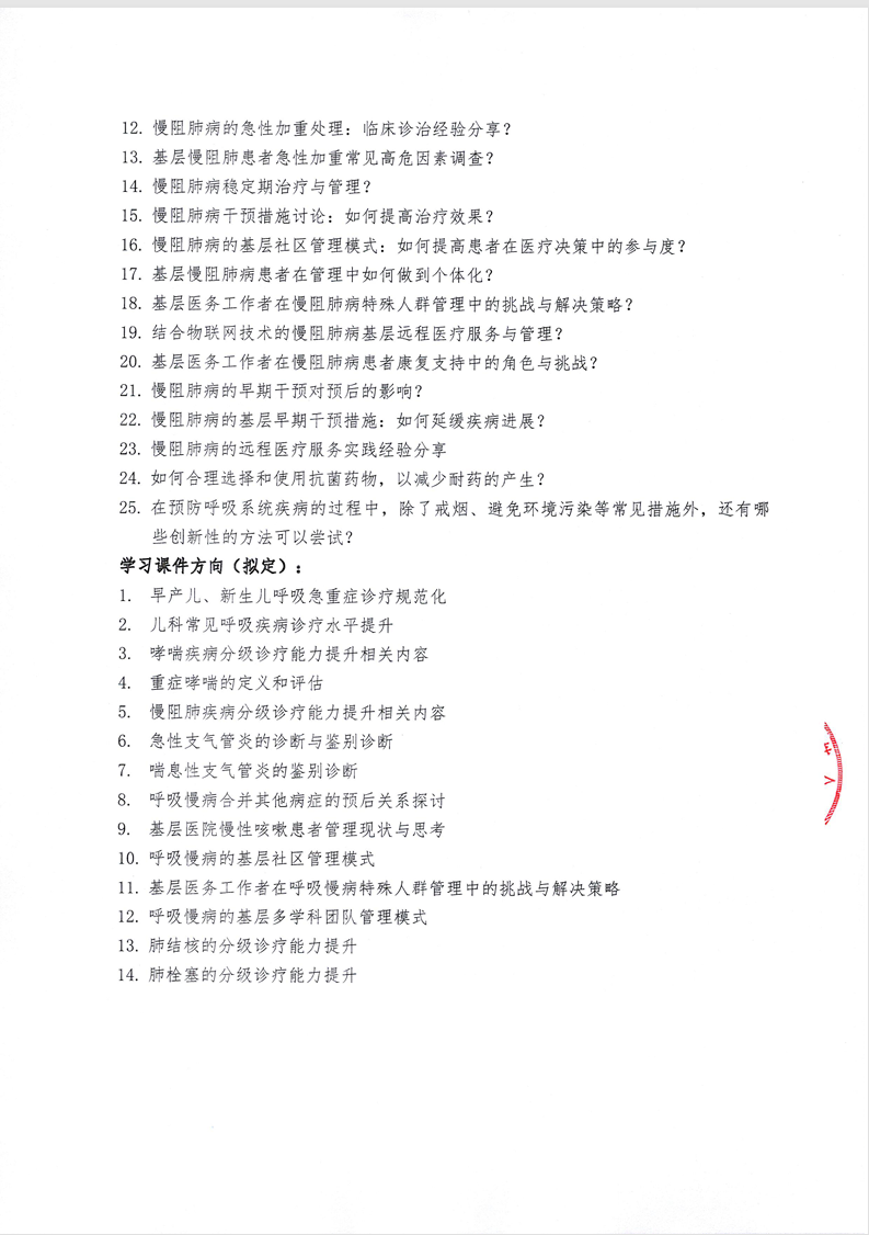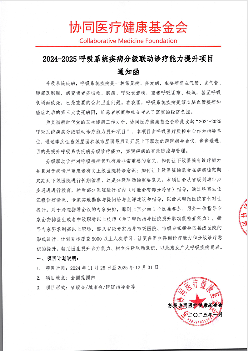 呼吸系统疾病分级联动诊疗能力提升项目通知函