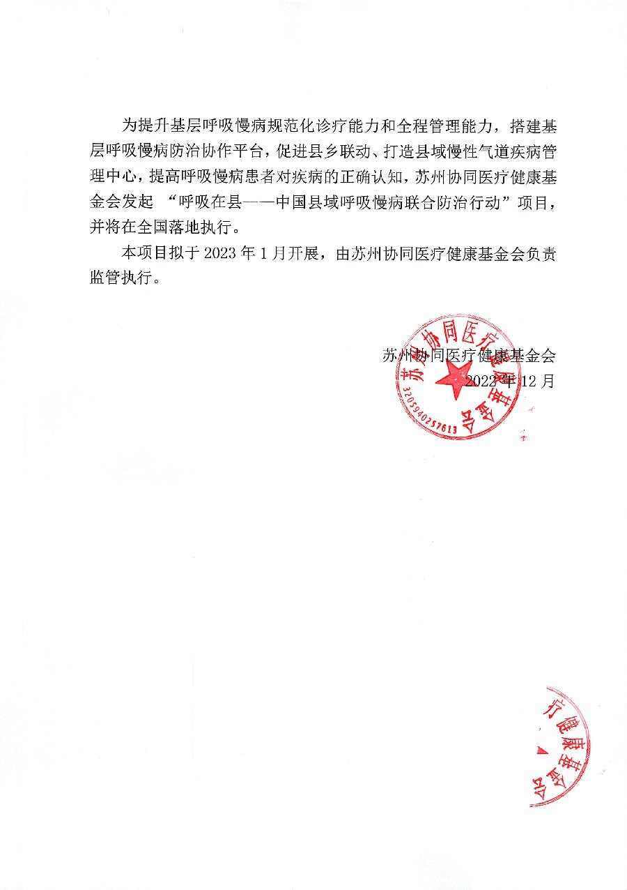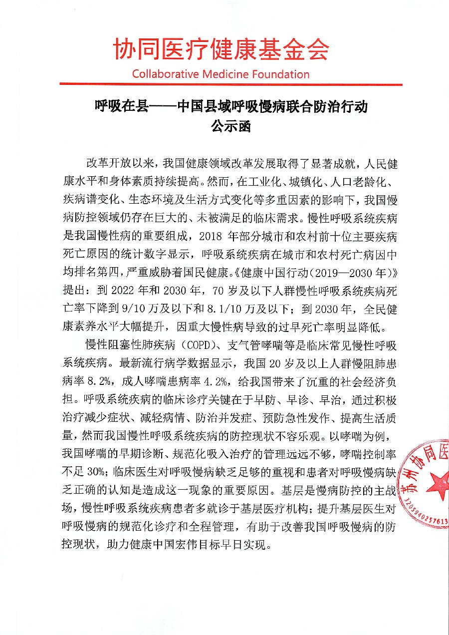 【公示函】呼吸在县——中国县域呼吸慢病联合防治行动