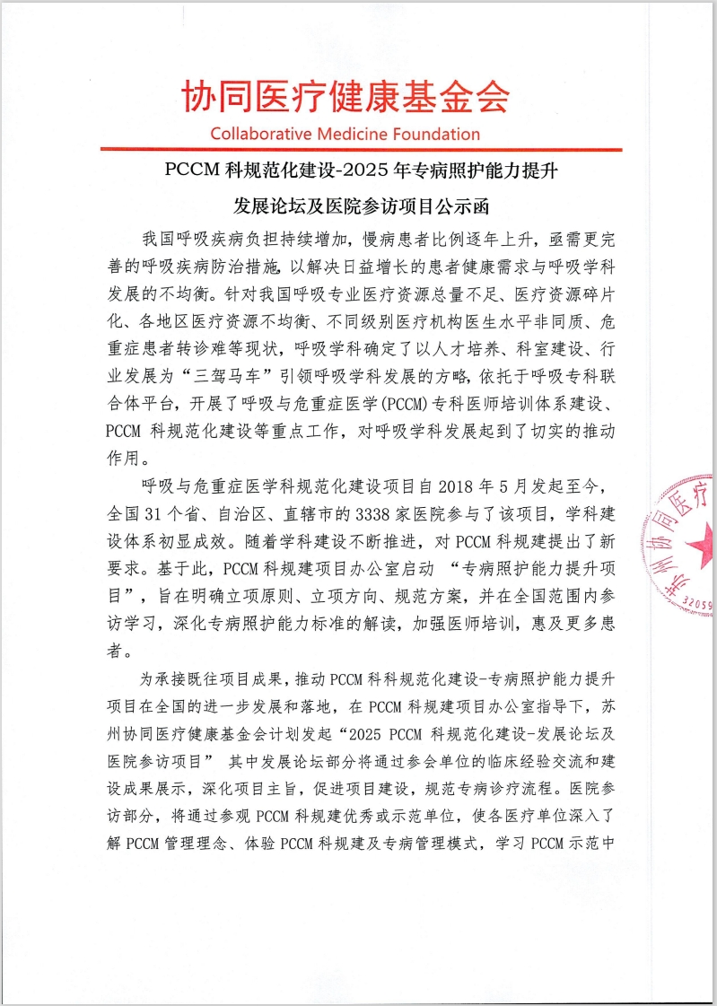 PCCM 科规范化建设-2025 年专病照护能力提升发展论坛及医院参访项目公示函
